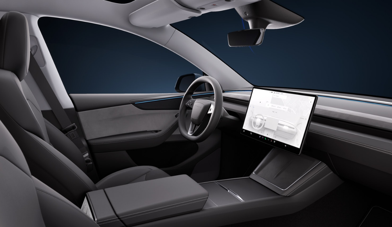 내부는 패브릭 소재의 시트 커버로 마감되어 편안함을 더했습니다. 모델 3에서 이슈가 되었던 방향 지시등 레버는 제거되었으며, 대신 터치식 센터 디스플레이는 15.4인치, 2열 터치스크린은 8인치로 업그레이드되었습니다. 2열 시트는 전동식으로 트렁크에서 버튼을 통해 자동으로 접을 수 있어, 필요 시 2130리터의 넓은 수납 공간을 활용할 수 있습니다. 또한, 앰비언트 라이트도 탑재되어 차량 내부의 분위기를 한층 더 고급스럽게 만들어줍니다.