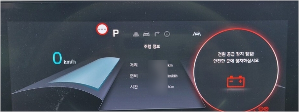 - "전원 공급장치 점검! 안전한 곳에 정차하십시오"
