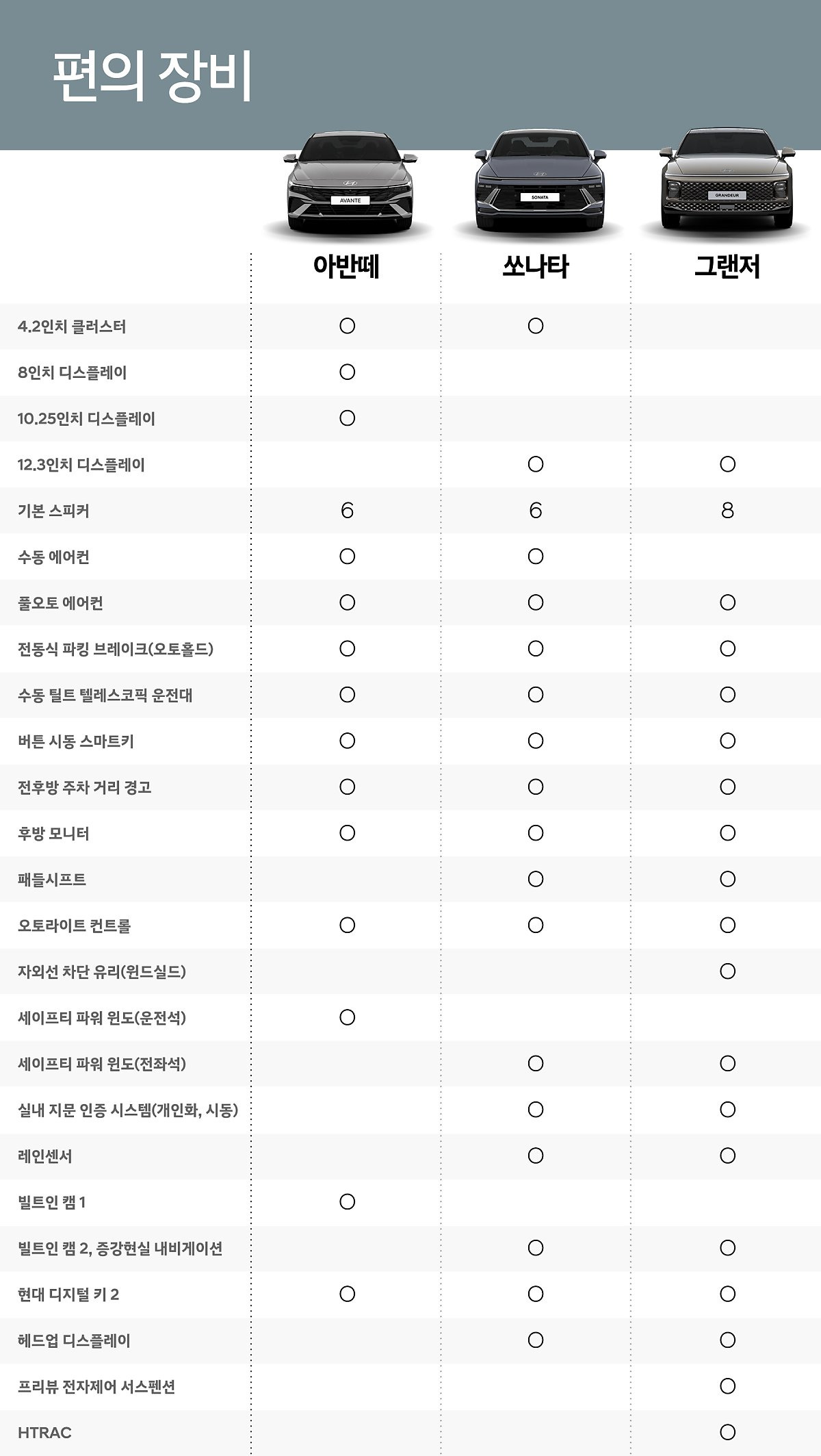 아반떼, 쏘나타, 그랜저는 각각 다양한 파워트레인 옵션을 제공하며, 이는 소비자의 선택 폭을 넓히는 요소 중 하나입니다.