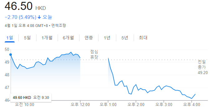 2025년 4월 1일(현지시간), 홍콩 증시에 상장된 샤오미 주가가 전일 대비 4.07% 하락한 47.20홍콩달러로 거래되고 있습니다.